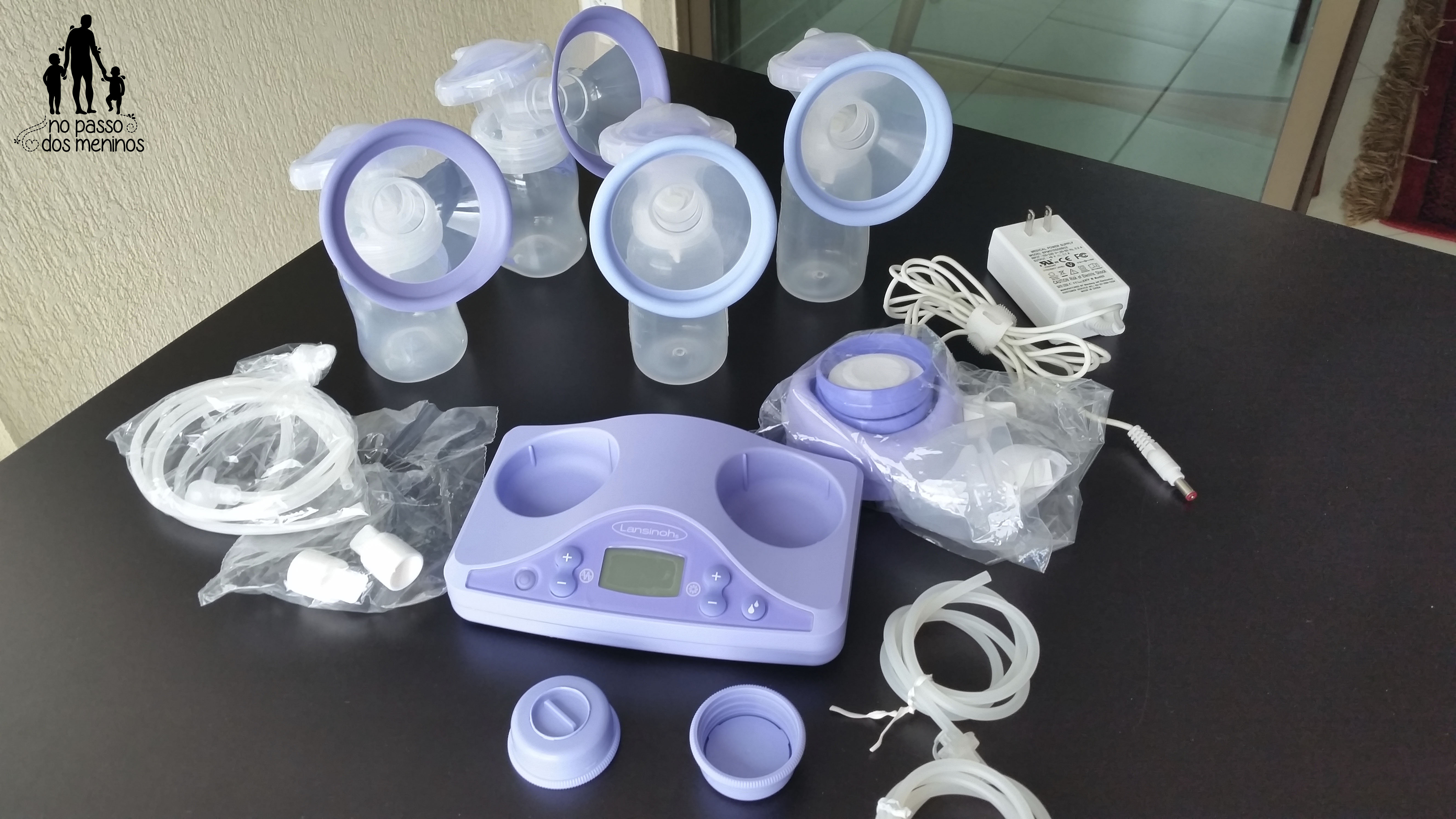 Essa é minha bomba elétrica dupla, mas nunca consegui ordenhar os dois seios de uma vez só. Parece que a potência diminui e o leite não sai. Para esse próximo bebê eu comprei mais um kit de recipientes com o bojo maior. Espero que fique mais confortável.