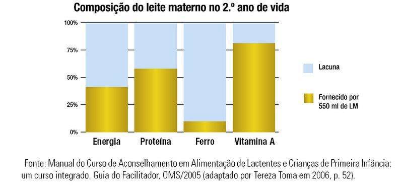 A parte em amarelo é o que o leite materno provê e a lacuna é o que os alimentos garantem. Portanto, nunca mais pense ou diga que leite materno é água!!