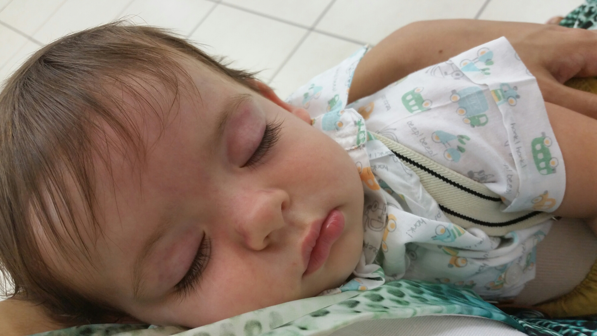 Descrição da imagem #PraCegoVer: João dormindo recostado ao meu peito. Pele branca, bochechas rosas e cílios compridos.